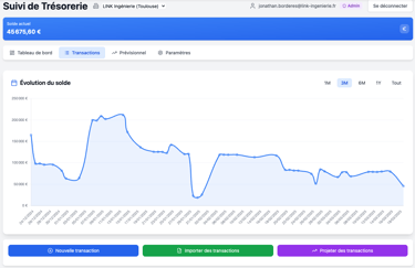 Cette application de suivi de trésorerie va vous permettre d'avoir une vision claire et précise de l'état de votre trésorerie. De catégoriser vos dépenses automatiquement et de créer un prévisionnel de trésorerie sur plusieurs mois en un clic.