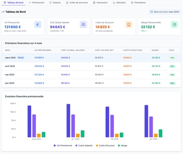 Outils pour simuler divers scénarios financiers et voir l'impact potentiel sur le budget prévisionnel. Cela peut inclure des ajustements pour les variations de coûts ou de revenus.