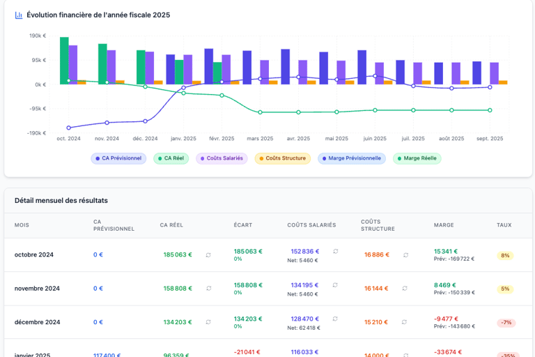 Fonctionnalités pour suivre les dépenses réelles par rapport aux prévisions et identifier rapidement les écarts.